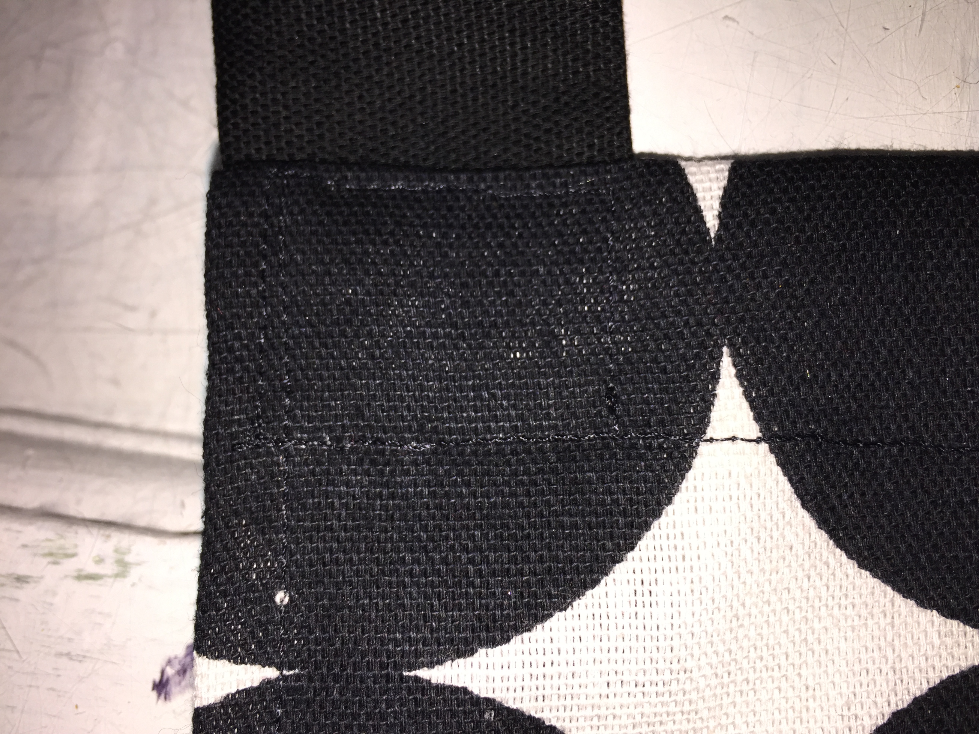 • Sew across the top, then reinforce the tie ends by sewing like so…