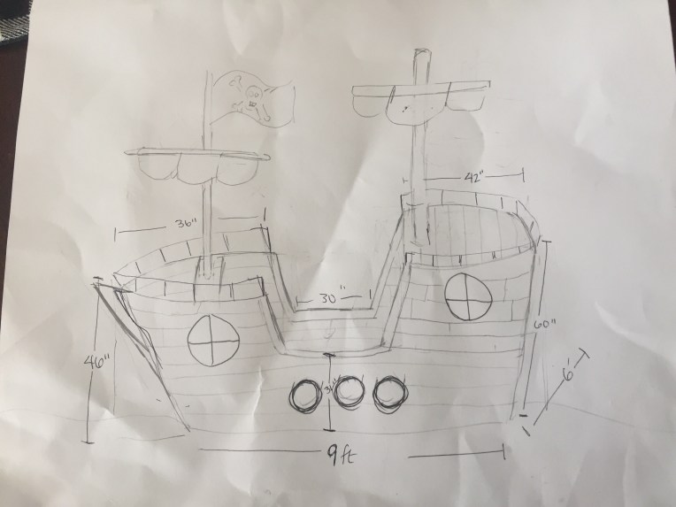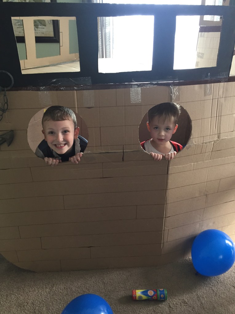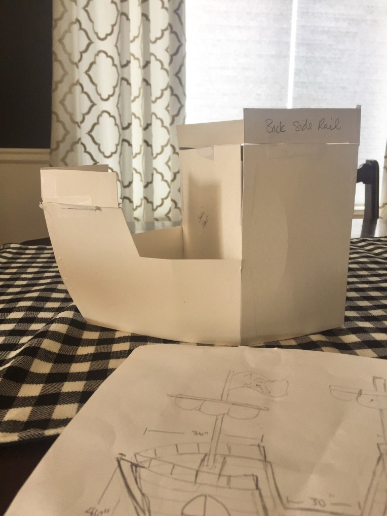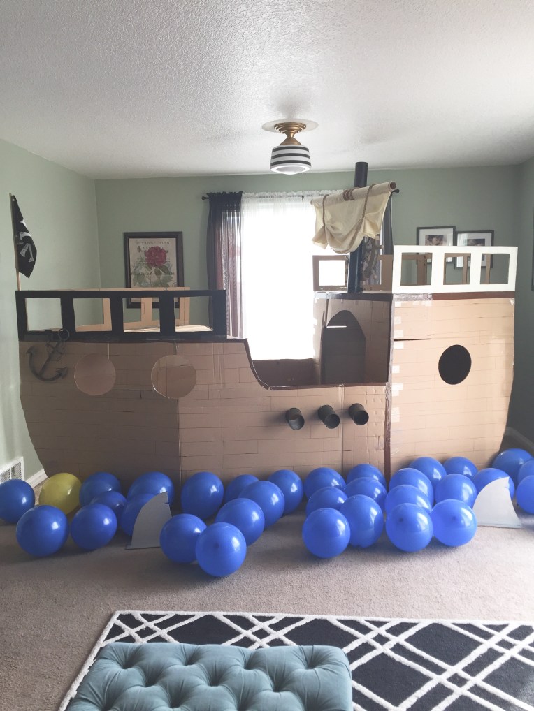 A quick Pinterest search yielded all these creative people who made giant cardboard pirate ships, so we decided we needed one too, obviously!