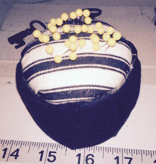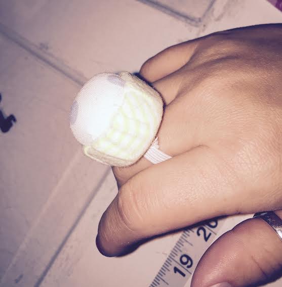 2. Next, I wrapped the ribbon around the form to cover the Styrofoam. I added a dab of hot glue to the ribbon every few times around. Once it was covered, I also used ribbon to create the hanger.