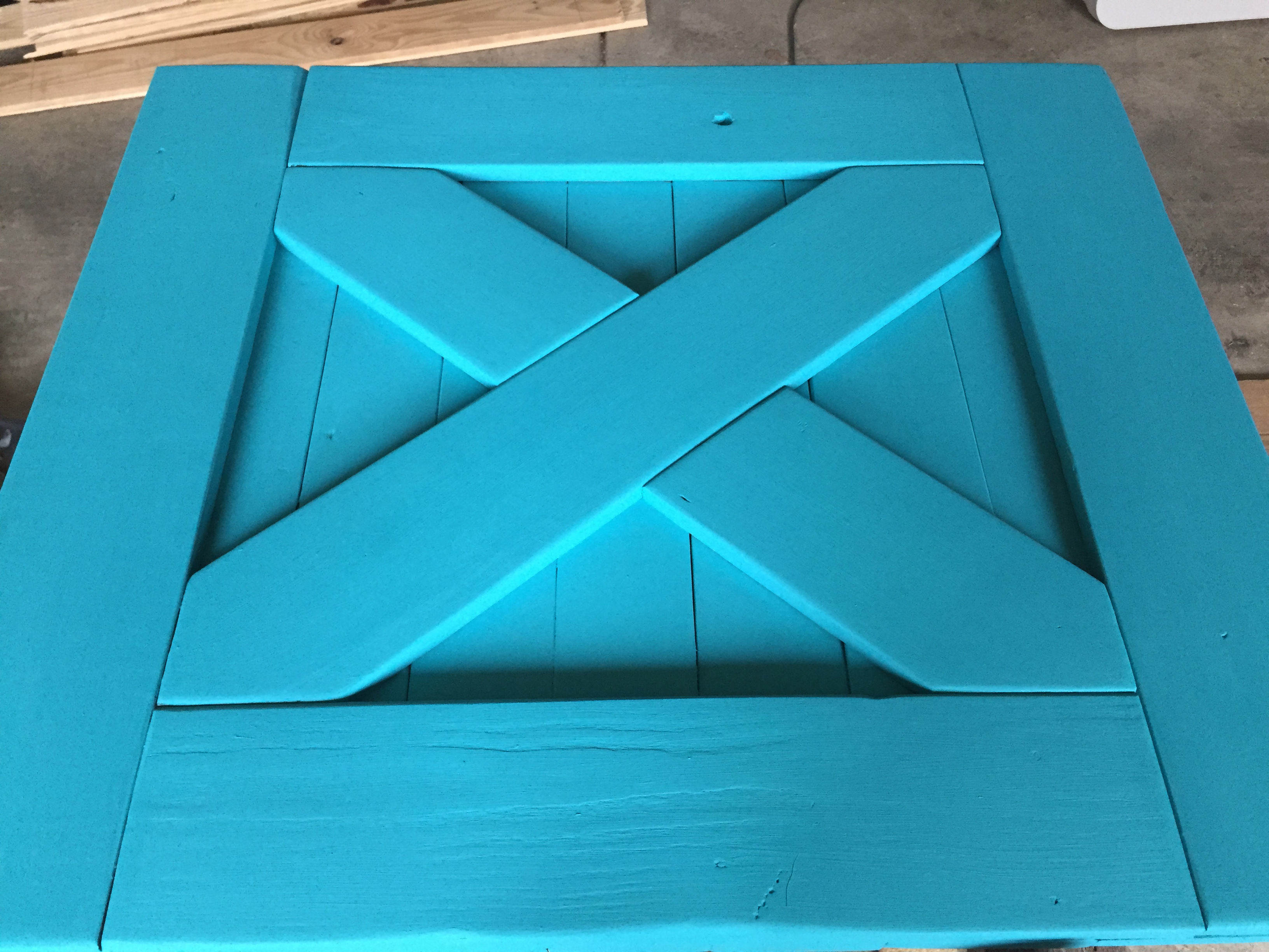 4. Next I flipped over the door and fitted the “X”. Again, screwed it in from the back.